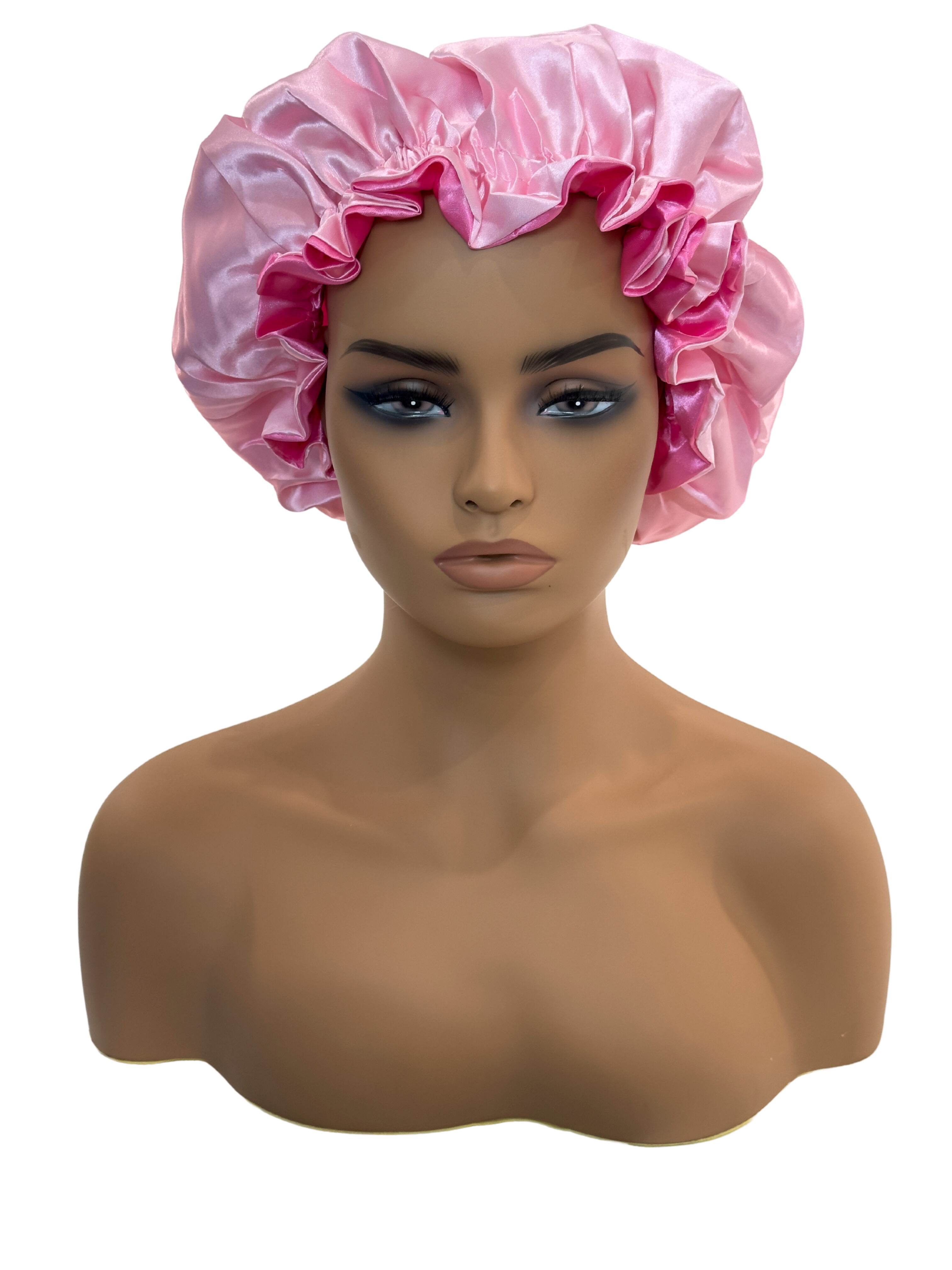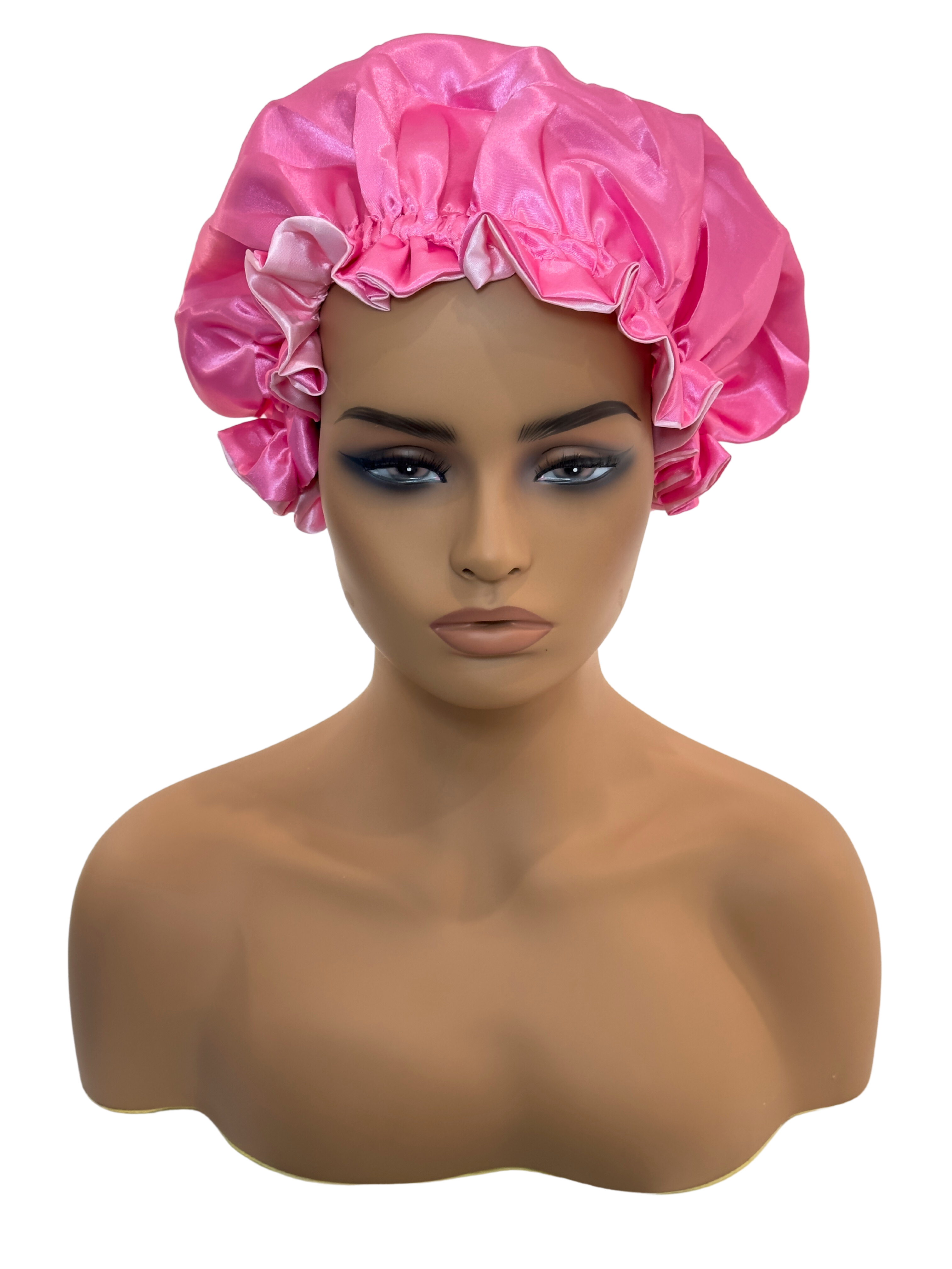 This luxurious silk bonnet is the perfect accessory for keeping your wigs and bundles secure and protected. The high-quality silk ensures a snug and tight fit, while the cheerful pink fabric adds a fun accent to any look.